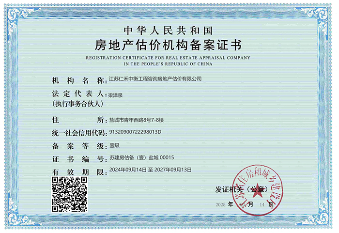 - 房地產估價機構備案證書